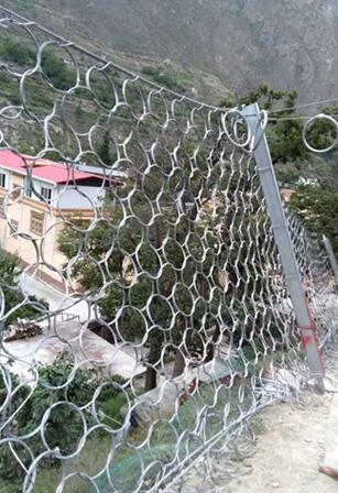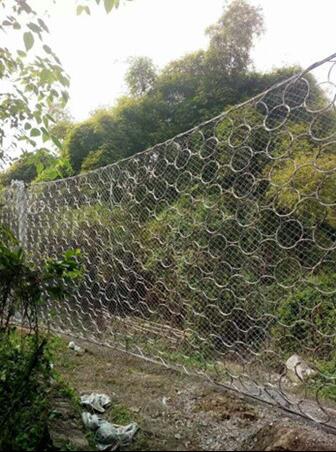 環(huán)形網(wǎng)也是使用于被動防護系統(tǒng)的產(chǎn)品,均采用直徑3mm,抗拉強度不低于1700MPa的高強度鋼絲盤結(jié)數(shù)圈成環(huán),并相互套接而成,具有極強的幾何變形和彈塑性變形能力,由此所帶來的柔性網(wǎng)自身強大的能量吸收能力,從而降低了對系統(tǒng)其他構(gòu)件承載能力的要求。